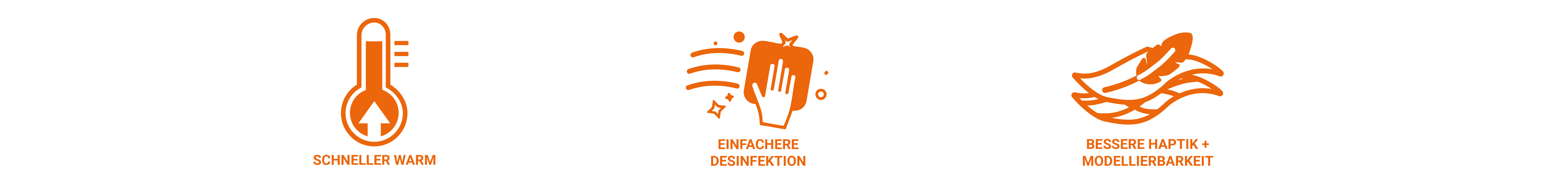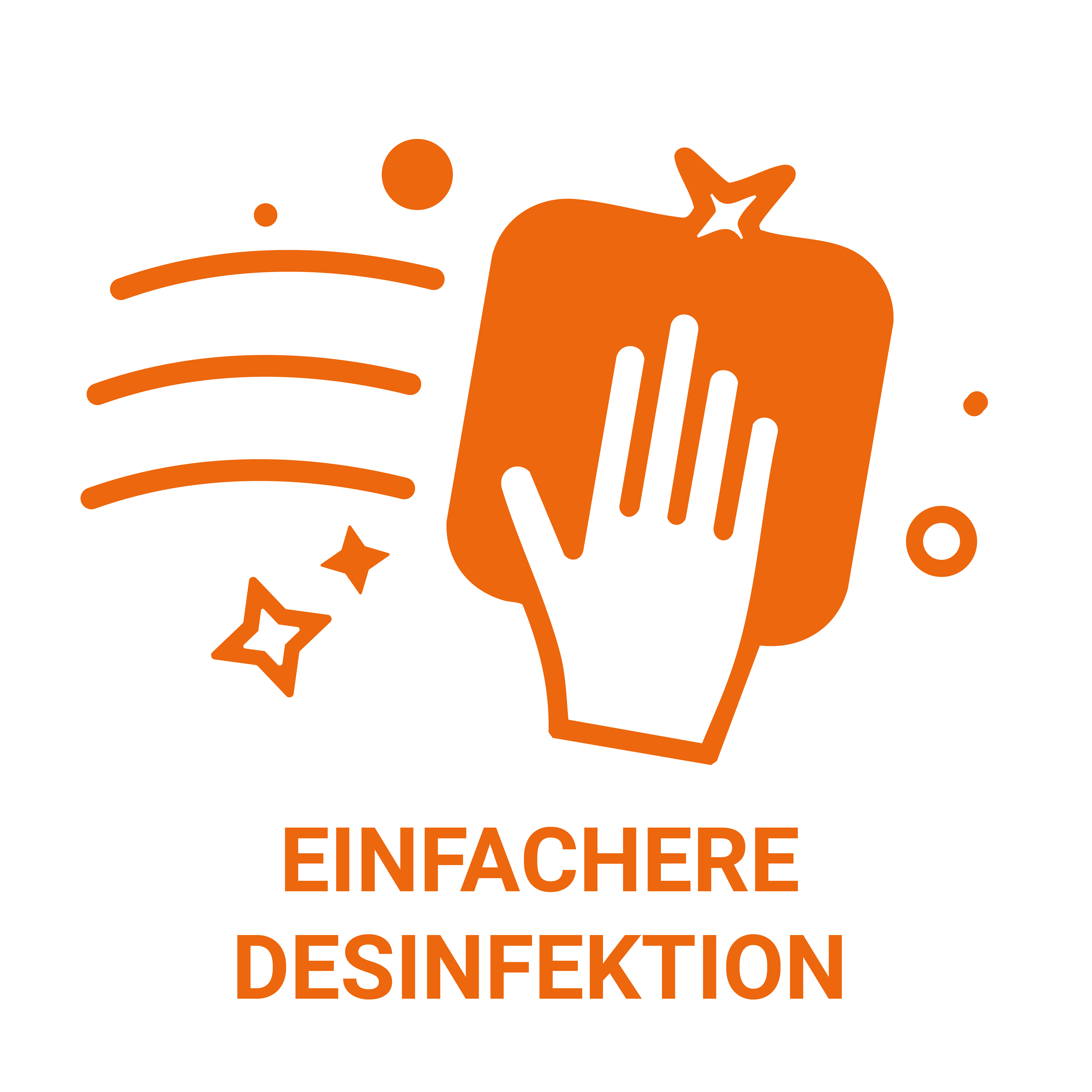 - Unkomplizierte Desinfektion mit alkoholfreiem Alkohol oder durch die thermische Desinfektion bei 75 °C und 45 Minuten in der Anwendung