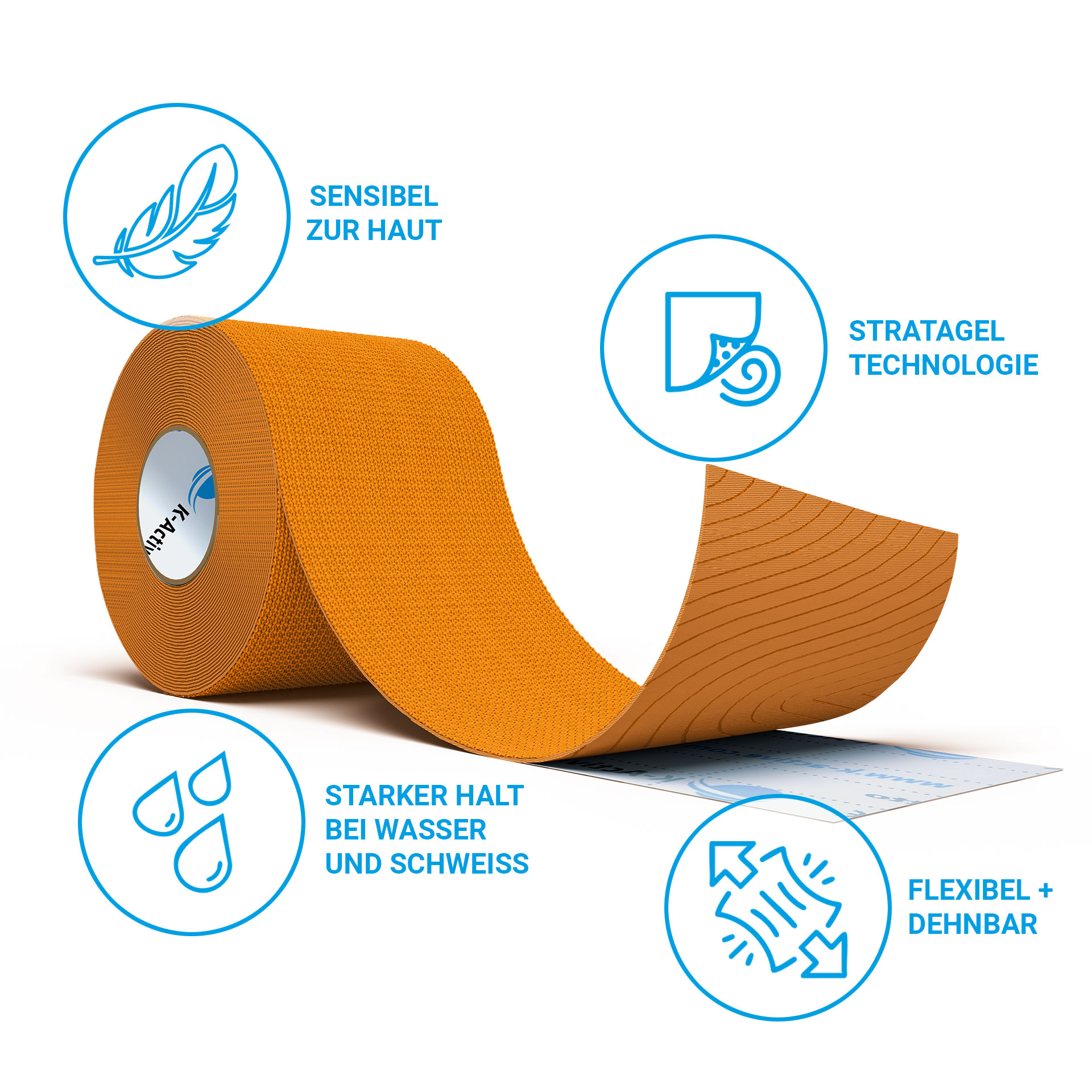 Das K-Active® Tape Elite setzt mit seiner weiterentwickelten STRATAGEL PLUS Klebetechnologie neue Maßstäbe im kinesiologischen Taping. Die innovative Formulierung vereint verschiedene Eigenschaften, die bisher kein Tape auf dem Markt in dieser Form bietet: maximalen Halt und gleichzeitig eine außergewöhnliche Hautfreundlichkeit, selbst bei sensibler oder zu Irritationen neigender Haut. Die STRATAGEL PLUS Technologie sorgt dafür, dass das Tape durch den hypoallergenen Kleber lange getragen werden kann. Beim Abnehmen löst sich der Kleber in sich selbst auf und nimmt dabei kaum Hautpartikel mit. Dadurch werden Rötungen und Mikroirritationen deutlich reduziert. Das Ergebnis: ein spürbar angenehmes Tragegefühl über mehrere Tage hinweg. Trotz dieser sanften Wirkweise überzeugt das Tape Elite durch extreme Belastbarkeit: Ob im chlorhaltigen Bewegungs- oder Schwimmbad, im salzigen Meerwasser oder schweißintensive Trainings, das Tape bleibt zuverlässig haften und unterstützt die betroffenen Strukturen auch unter anspruchsvollsten Bedingungen.
